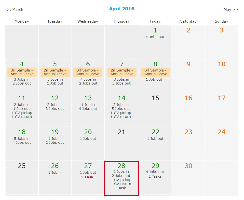 The Diary Manager is a simple yet highly effective tool to make monitoring daily tasks and workshop operation a breeze. It draws on all of the system information to produce a simple schedule of what is occurring in your workshop today.